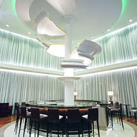 Project team: Frank Tjepkema & Janneke Hooymans While working for Artwise Curators, Helen Hayward and I undertook a site-specific commission with Droog Design for the Champagne Bar in British Airway's First Class Lounge, Heathrow Terminal 1. "We found the metaphor of a tree very suitable and attractive. As if it were a meeting place on the central square of a village, with a large tree in the middle.. We used a graphic representations of branches, and gave them a extrusion sweep in the computer in order to transform the object (an airconditioning tube) into a monumental and dynamic sculpture. The airconditioning, which is usually hidden away, becomes the absolute centerpiece of the space." (Droog Design)