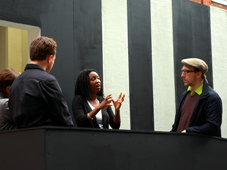 East End Gallery walking tours Initiated through F-EST, an anual event celebrating the culture within the East End 2002-2004, Helen Hayward and I organised East End Gallery walking tours. With expert guides (art journalists, curators, artists) complimented by short talks by gallerists, the tours appealed to students, tourists, locals and local businesses alike. We have also organised a number of customised tours for a range of different organisations. . (photographs detail walking tours at David Adjaye's inIVA installation, Rashid Araean's F-EST commission at 291 Gallery and Ross Sinclair at The Agency) |