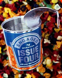 ENGAGED Magazine 1994-1998 ENGAGED magazine appeared in the format of a t-shirt, a poster, a CD-Rom featuring the work of digital artists, a tin containing pop and found art, a video featuring the work of film-makers, and a series of radio broadcasts featuring sound-artists, poets and story-tellers. This was a project I set-up as a small press, editing (with help from guest editors Philip Ilson and Martin Spinelli), producing, marketing and sourcing funding. The magazine was designed by David Rainbird. The archive website is hosted as part of the Goldsmiths' Special Collections website and the magazine is held in a number of archives around the world and was featured in exhibitions, press reviews, and sold in bookshops internationally. For full details including a demo of the digitally rendered public toilet interface of CD-ROM Issue 3, short extracts from the films of video Issue 5 and the mix of (amongst others) DJ Spooky, Tim Etchells and The Frank Chickens in radio Issue 6 visit the archived website by clicking here. To go directly to listen to the Radio Issue click here. ENGAGED was supported by London Arts Board and the Film and Video Development Agency. |